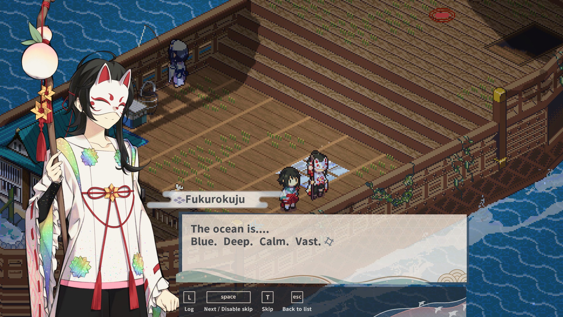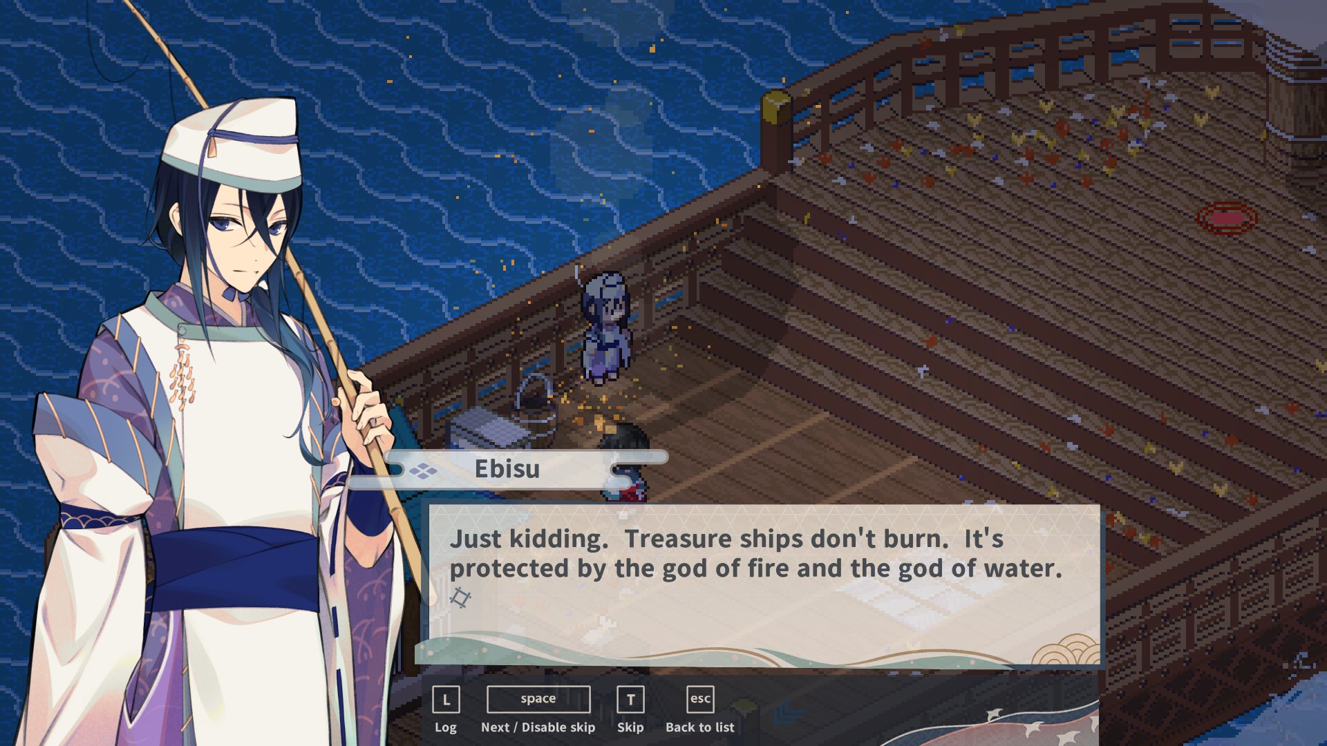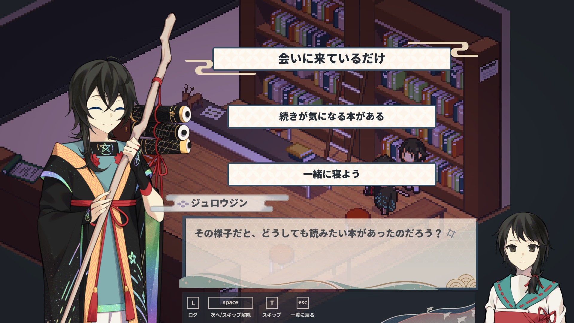 七福神を翻弄する和風ドット絵アドベンチャーゲーム「虹の降る海」は数々のユニークな逸話を持つ七福神をモチーフにした物語です。クォータービューのドット絵で表現された宝船内を移動してキャラクターと交流し、イベントを発生させます。ただの人間であるあなたが神さまと渡り合うための唯一の武器は嘘をつくことです。自分の選択や行動が細かく反映された結果として辿り着く22のエンディングは全く異なるもので、数々の散りばめられた伏線を目にしたプレイヤーであるあなただけがすべての真実を知ることになります。 // You can play with the Seven Lucky Gods, the Japanese popular and traditional gods for the ordinary folks, in the Japanese-style pixel-art adventure game Rainbow Sea. As a mere mortal, Human, your only weapon to cross paths with the gods is to lie. The twenty two endings you will reach as a result of your choices and actions are completely different, and only you, the player, will know the truth of everything after seeing the numerous foreshadowing lines.