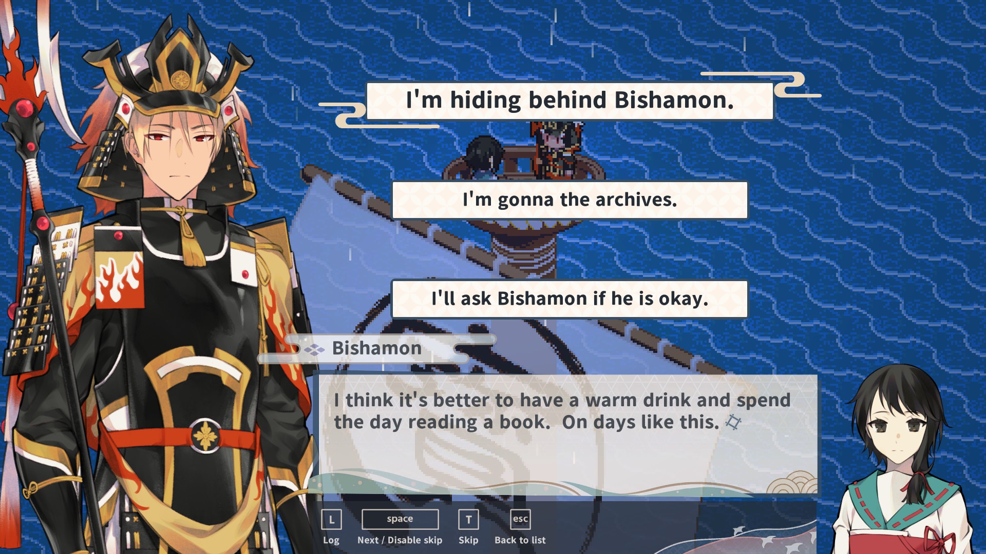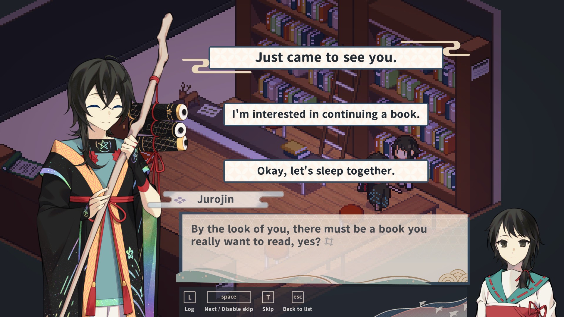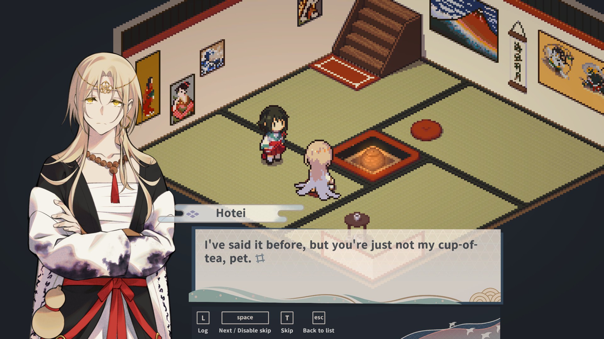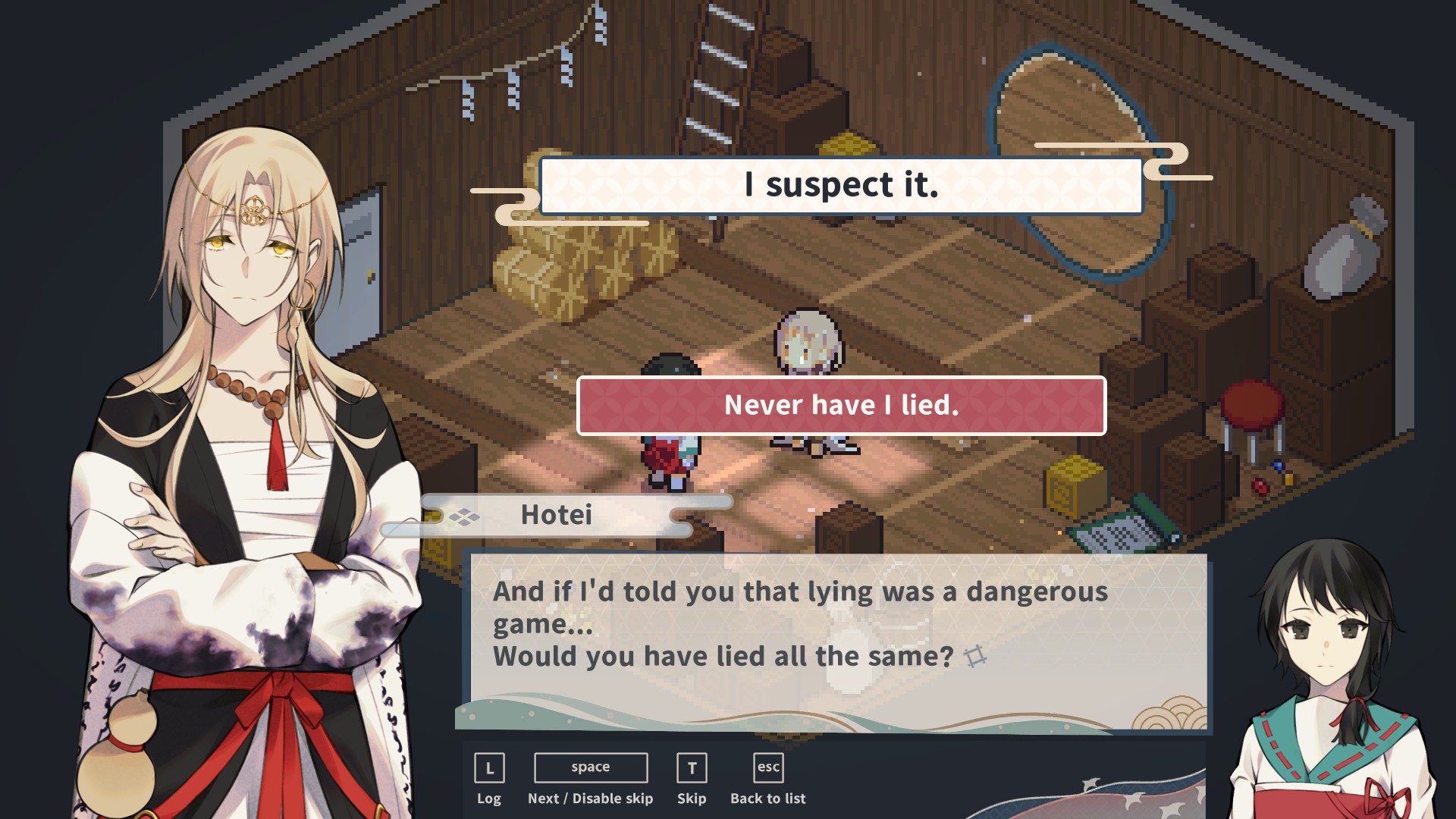 七福神を翻弄する和風ドット絵アドベンチャーゲーム「虹の降る海」は数々のユニークな逸話を持つ七福神をモチーフにした物語です。クォータービューのドット絵で表現された宝船内を移動してキャラクターと交流し、イベントを発生させます。ただの人間であるあなたが神さまと渡り合うための唯一の武器は嘘をつくことです。自分の選択や行動が細かく反映された結果として辿り着く22のエンディングは全く異なるもので、数々の散りばめられた伏線を目にしたプレイヤーであるあなただけがすべての真実を知ることになります。 // You can play with the Seven Lucky Gods, the Japanese popular and traditional gods for the ordinary folks, in the Japanese-style pixel-art adventure game Rainbow Sea. As a mere mortal, Human, your only weapon to cross paths with the gods is to lie. The twenty two endings you will reach as a result of your choices and actions are completely different, and only you, the player, will know the truth of everything after seeing the numerous foreshadowing lines.